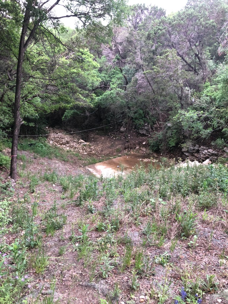 After about a mile down the road, the green area was in sight and a potential path dropped down into the woods. I completed the Texas new route pre-check routine. This includes making sure there is not a private property sign because being shot was not on the schedule for the day. With nothing in sight, the adventure was meant to be!
