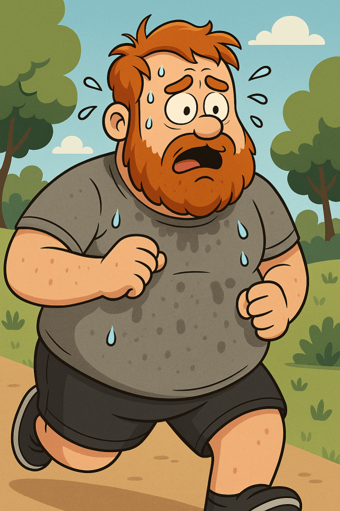 The harder you run means that you must burn more calories. That’s a guess. I base this off by putting the speed up on the treadmill and seeing the calories burned per hour increase. So, the harder you run, the more you sweat. And running in humidity means a lot of sweat. Therefore if you follow my newly found truth, humidity must lead to burning more calories! Which the real victory means you get to eat more fried food somewhat guilt-free.