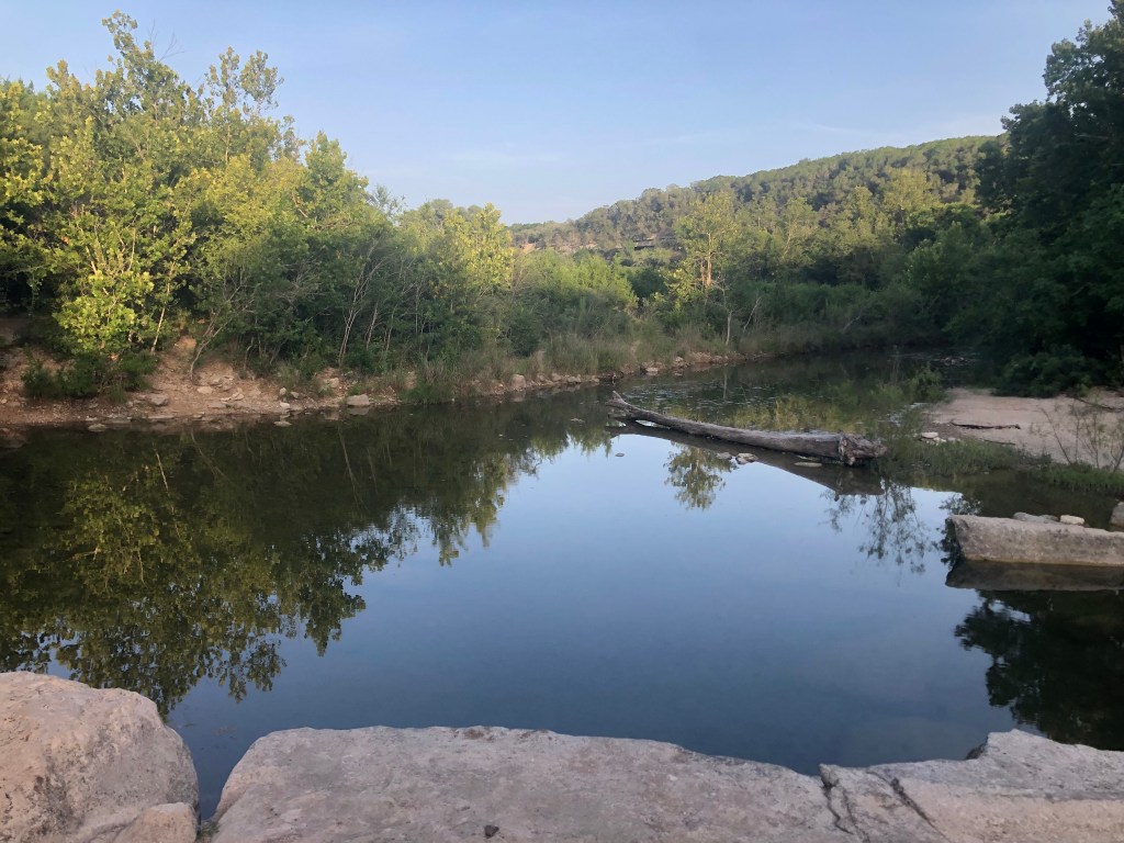 As I passed into mile 2, I started to see some water in the creek bed which was exciting! When we had first moved to Austin about 5 years ago, water was flowing pretty consistently and many people enjoyed the local watering holes. Unfortunately these were becoming fewer and farther between. I still managed to soak my hat with a good amount of standing bacteria water to cool off when entering the halfway point. Hopefully, I wouldn’t grow a green tail or something exotic the next few days. (A tail would be kinda cool though).